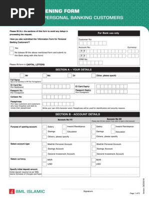 Bml Islamic Personal Account Opening Form Debit Card Deposit Account